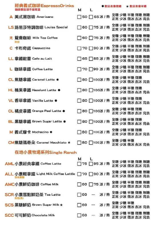 order coffee in Taiwan. Whether you are becoming a little too dependent on your coffee fix, just drink it socially, or absolutely detest coffee you will likely find yourself spending a lot of time in cafes here because not only are they everywhere they are also one of the most popular places to study. Compared to the States, much more care is given to the creation of beverages in Taiwan and because of this whenever you order coffee, boba or other drinks they will ask you what level of sugar and ice you want. I can’t remember exactly how they phrase this question but if you hear 糖 (sugar) or 冰 (ice) then you know they are asking about this and you can reply with 正,少, 半, 微 and 無 (regular, less about 70%, half, slight sugar about 30% and no sugar) As an example of how to order, or just in case you are curious, this is my standard coffee order 我要一杯冰的咖啡拿鐵半糖小冰 (I want an iced latte with half sugar and light ice).