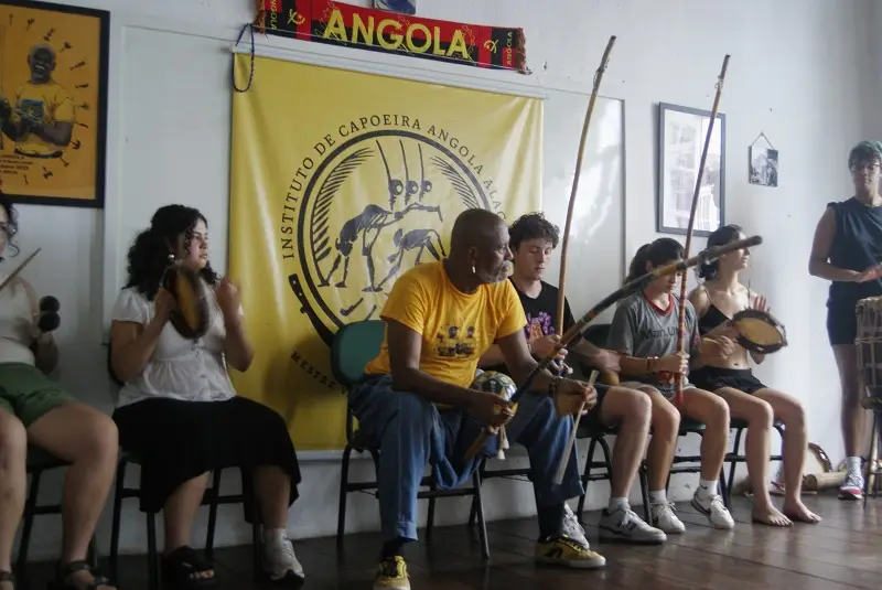 At the end of the day, we went to a capoeira class of our own with Mestre Velmir, a master in Angolan-style capoeira. We learned about how to build trust in our roda, or circle, through experimenting with the traditional instruments of capoeira: a berimbau, agogo, pandero, caxixi, and atabaque. We learned how to build a capoeira chant, how to establish respect with your partner, going beyond capoeira as a martial art but also as a way of life.
