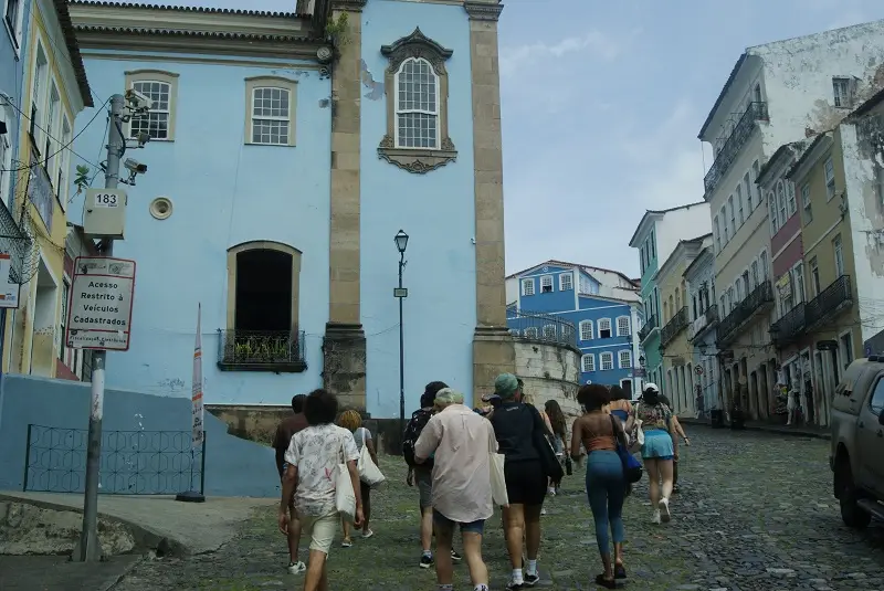 As we walked through the plaza, people practiced capoeira, a martial art. Women wore costumes representing the orixás. We passed by historic buildings like the Igreja de Nossa Senhora do Rosário dos Pretos, a Catholic church using candomblé rites and music.