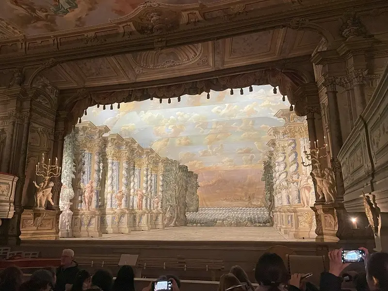 Although many of the castle buildings were closed for the winter, someone kindly made an exception to allow us to enter the old Baroque theater. The seating area was dark and cold, but the stage itself glowed gold. It had been used for a royal wedding, equipped with all the modern technologies of its day (including a complex pulley system to change scenery in seconds), and then lay in disuse for many years. The interior we saw was almost completely original; it really felt like we had stepped through time.
