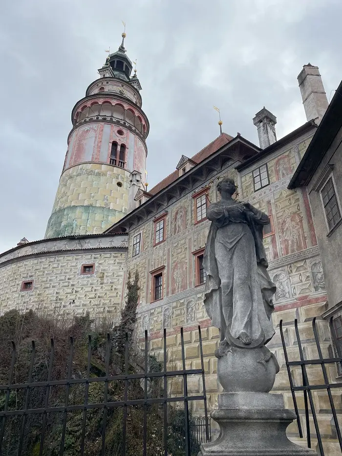 I was surprised to find that there were live bears in the moat. Apparently, someone had tried to smuggle them through an airport at some point. After being found at security, they were brought to the castle for rehabilitation. I couldn’t see them because they were cuddled up together in their den, but some of my peers spotted them roaming around. I am taking an Art and Architecture class, in which we have concentrated on Medieval Central Europe. It was fascinating to see the subjects we have discussed in person, like ways of fortifying a castle, and Český Krumlov has continued to come up in class examples.