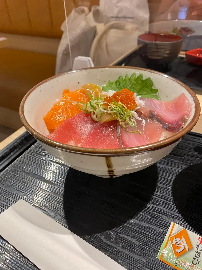 Umeda is a busy shopping district in Osaka — when you’re tired of searching through stores, there’s a food court underneath the train station where you can find sashimi for around eight dollars.