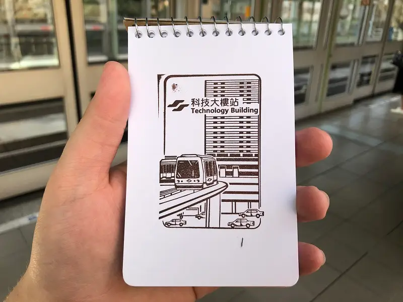 After classes end, I am typically on the other side of campus, so I catch the Brown Line back home at the Technology Building station. Being on one of the raised sections of the MRT, the Technology Building station is physically connected to the Technology Building, which houses the Ministry of Science and Technology. The building itself and the raised railway are depicted on this station’s stamp.