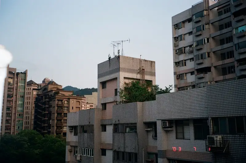 Late in the afternoons, I often wanted to go home to rest and see my roommates. I love coming home to my roommates and telling them about the new places I discovered. After I get home, I first step onto the apartment balcony to admire the sunset and sometimes do my laundry. This is the view from one side of our balcony. I love all the apartments in my area and the character they add to the neighborhood.