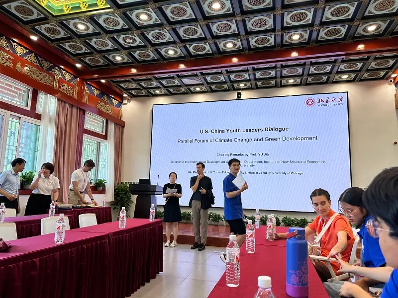 Participating in the forum on the green economy during the 知行中国:中美青年领袖对话 (Zhī-Xíng Zhōngguó: Zhōng-Měi Qīngnián Lǐngxiù Duìhuà – Zhi-Xing China US Youth Leaders Dialogue) event at 北京大学 (Běijīng Dàxué – Peking University). Representing CET, we engaged in enlightening discussions on sustainable development and environmental responsibility, and we delivered our talks in Chinese.