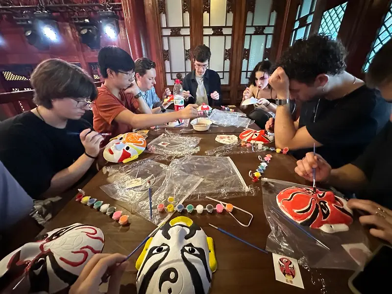 During the CET-sponsored excursion, we had an intangible cultural heritage experience of 京剧 (Jīngjù – Beijing Opera). Here we are painting the traditional masks used in performances. It was a hands-on activity that allowed us to appreciate the intricate designs and symbolism of these masks.