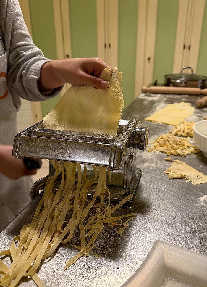 The instructor demonstrated the proper method to chop vegetables, mix egg and flour to form pasta dough, and use the machine that clamped to the table to flatten the dough and cut noodles. I learned so much from this hands-on experience, and as someone who loves to cook, I will be recreating these tasty recipes again.