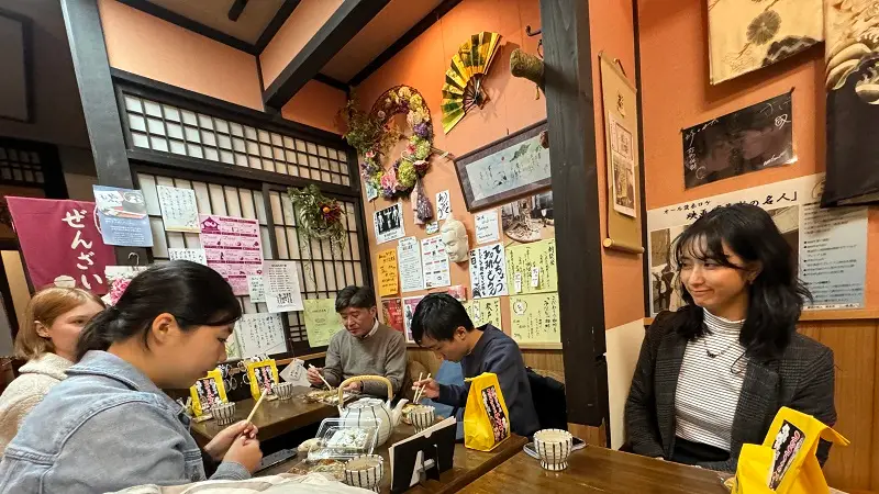 The first week of the program began with a few days of orientation and ended with a final orientation dinner. OGU students (your housemates) and CET students participating in the program ate an all-you-can-eat shabu shabu dinner together. At this point in time, the language pledge had yet to be implemented, so we got to get to know our new housemates better while grappling with the two languages. All the students gathered outside the station together to take a group photo to end the fun night!
