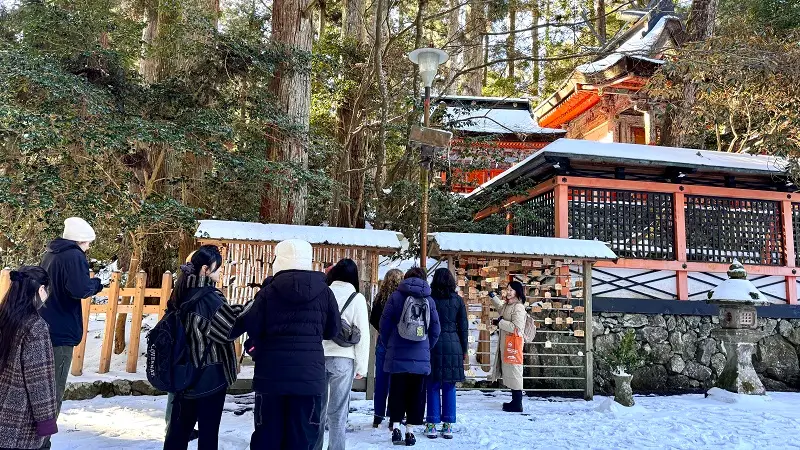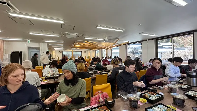 In the third week, CET hosted a day trip to Koyasan. It took a few hours by bus to the cemetery and temples while our tour guides took us around to explain each place’s significance. Koyasan was covered in snow and was extremely cold, but it was also extremely beautiful in the winter. For lunch, we ate a vegetarian meal containing some of Koyasan’s highly nutritious specialties like the tofu!