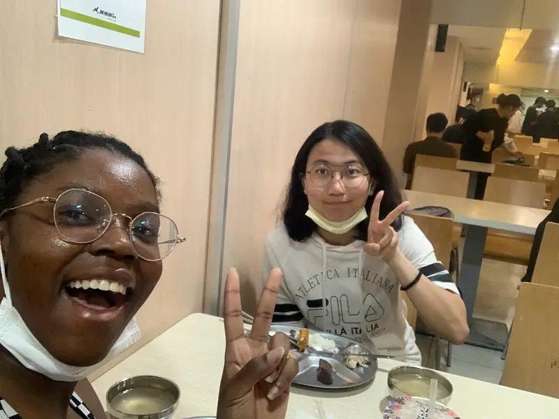 Syuan and I eating in the National Taiwan University Science and Tech cafeteria