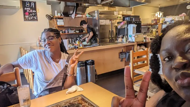 My friend is on the left and I’m on the right. Okonomiyaki is one of my favorite Japanese foods, so you bet I couldn’t wait to try it in its birthplace! Even though this okonomiyaki restaurant was quiet and located in a suburb, we already have plans to return!
