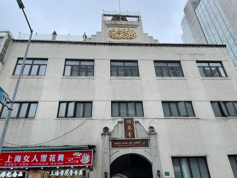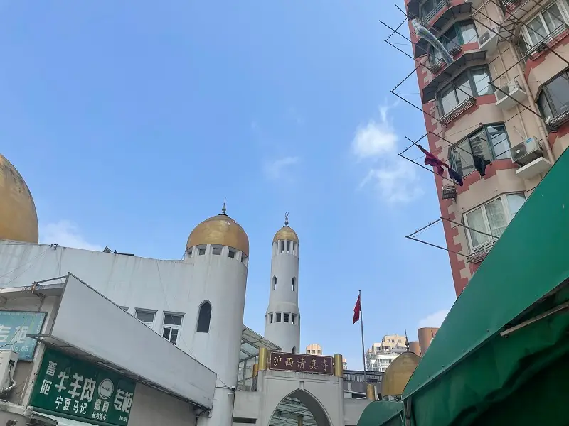 During the walk, I was taken aback when I saw the golden domes of a mosque nestled in between multi-story apartment complexes. I proceeded to enter what turned out to be the Huxi Mosque (沪西清真寺), one of several in the city.