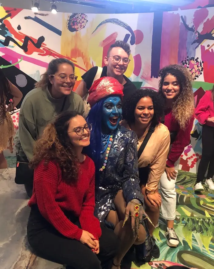 We stopped at SESC, a culture center that hosts contemporary art exhibitions on several floors and a rooftop bar overlooking the avenue. AVAF (Assume Vivid Astro Focus) is an artist collective that embraces conceptual experimentation and queer resilience. Most of its members are from Brazil and France, and on this day, the installation included an interactive performance exhibit.