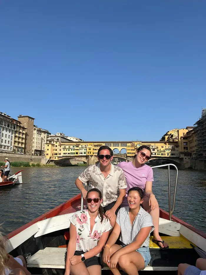 To celebrate July 4th, we did a boat tour on the Arno River. CET booked two barchetti, the traditional boats in Florence, to take us from campus to Ponte Vecchio, a medieval bridge over the river.