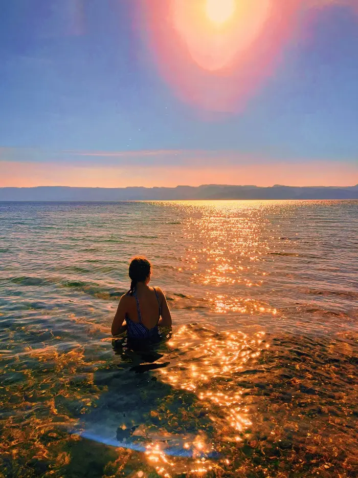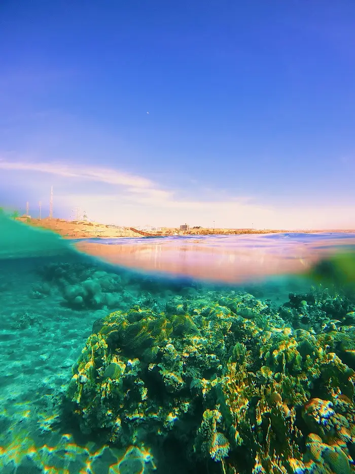 A sparkling picture of the red sea during golden hour. When in the Middle East, golden hour hits different.
