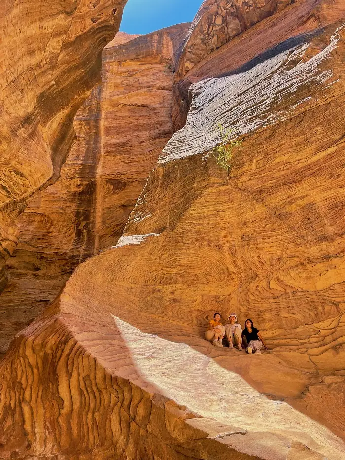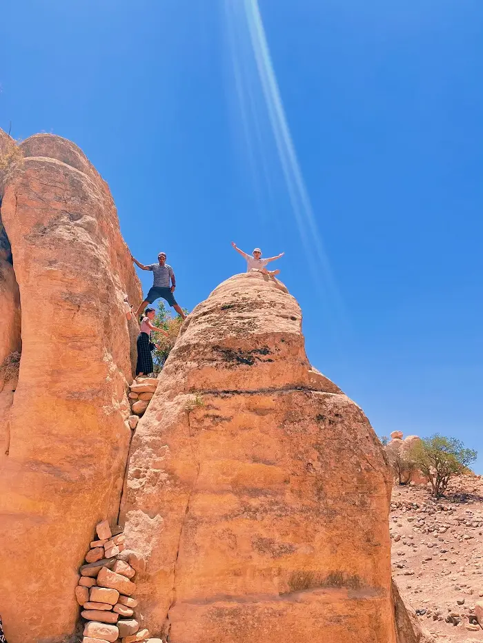 day one hike. We climbed this rock in order to see a Nabatean dwelling filled with writings. An archeologist’s treasure chest.