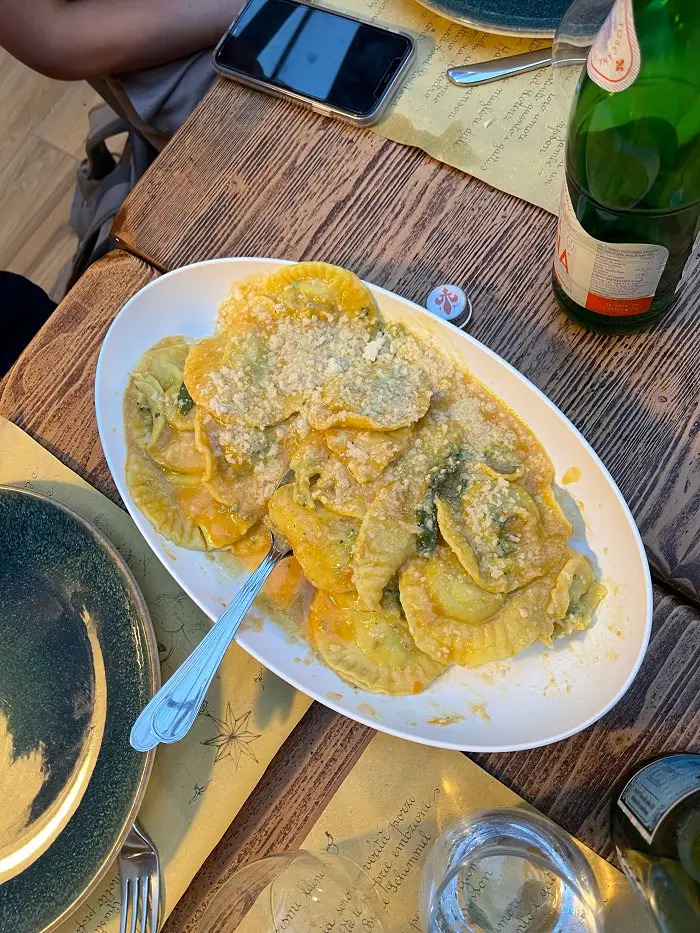 For our weekly activity through CET, we did a cooking class at Fonte Giusta! We made three types of pasta: pici (this a thick, rolled pasta that originates in Siena), gnocchi, and ravioli with a spinach and ricotta filling. On the right is our pasta once it was cooked! It was so fun (and delicious) not just to make the pasta from scratch but get to eat it too.