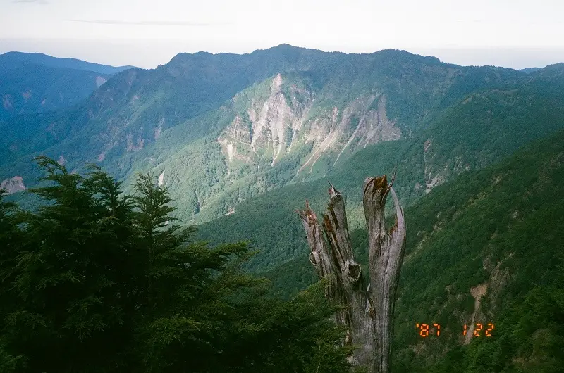 The logistics of getting there can be a bit rough due to the remote location, so we planned this trip for a 3 day weekend, starting with a night in 嘉義 (chiayi), then taking a shuttle up to 阿里山 (alishan). This first picture is the view of 阿里山 directly from the bus station. It is a truly beautiful area which boasts a host of gigantic trees, which happen to be my favorite kind of tree. I chose to bring a roll of black and white film along because I feel it captures the mountain scenery better, especially with cloudy conditions.