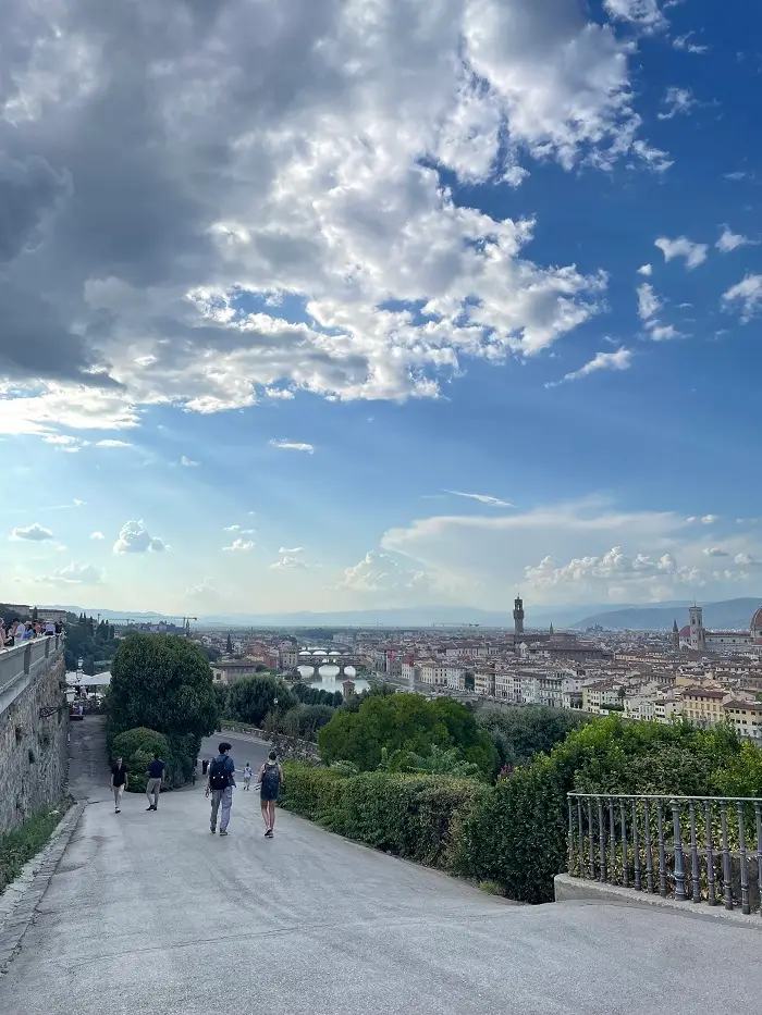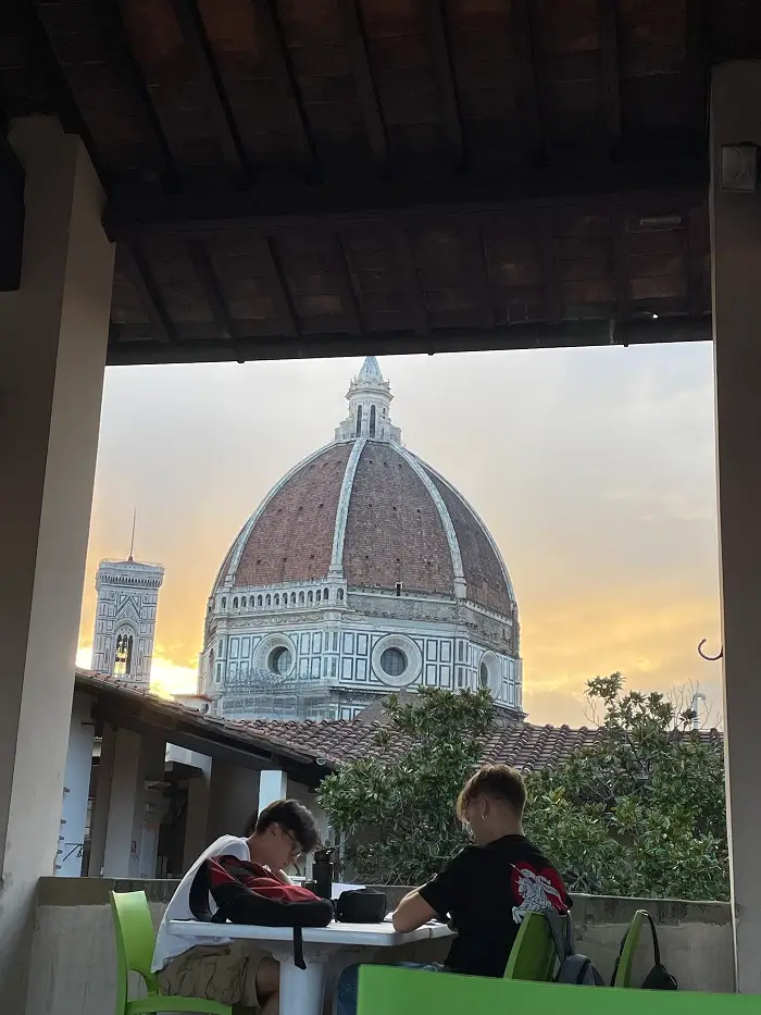 After the second day of class, we had a picnic in the Giardino delle Rose, a public rose garden just a ten-minute walk from the CET center. In addition to having delicious traditional Tuscan Foccacia and Torta della Nonna, a group of us decided to climb up to Piazzale Michelangelo to get a breathtaking view of the city for only a short walk. After looking out on the city, we went to a local library, Biblioteca della Oblate, where we found an even better view for studying.