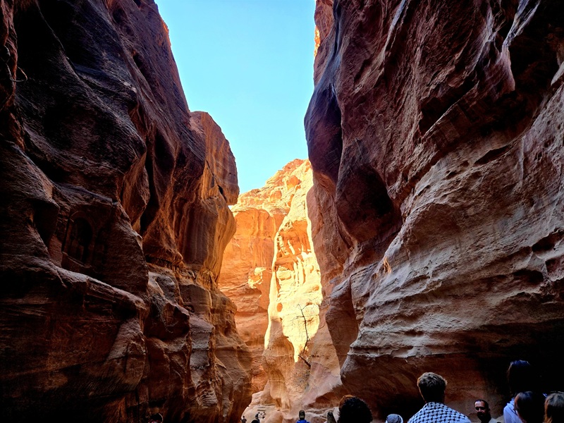 After we spent the night in Wadi Rum we visited Petra for the afternoon. Petra’s original inhabitants the Nabateans called it raqmu which means “coloured one” in Nabataean Aramaic and in modern times the city is also known as the Rose City. With the way the sun hit the sandstone in many places it makes total sense. At many places on the path to the treasury the mountains just glowed all around us.