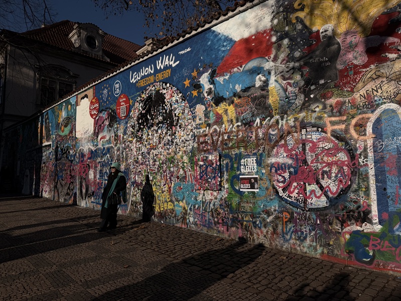 On day two of orientation, CET surprised us with a fun scavenger hunt through the city. We had a list of sites to visit, including an amazing brunch café to eat at. I was paired with four other students and we immediately headed to the first location. We saw a club in which Bill Clinton had performed in, wild peacocks at the park, and the rotating Franz Kafka head. In my opinion, the best part was the famous John Lennon Wall.